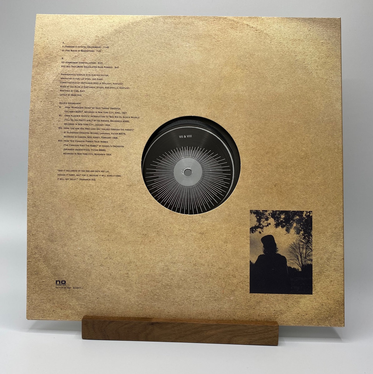 Phonographic samples with electric guitar, resonator guitar, lap steel, and piano. Committed August–September 2020 in Skylight, Kentucky. Mixed by Zak Riles at Earthwave Studio, Shelbyville, Kentucky. Mastered by Carl Saff.